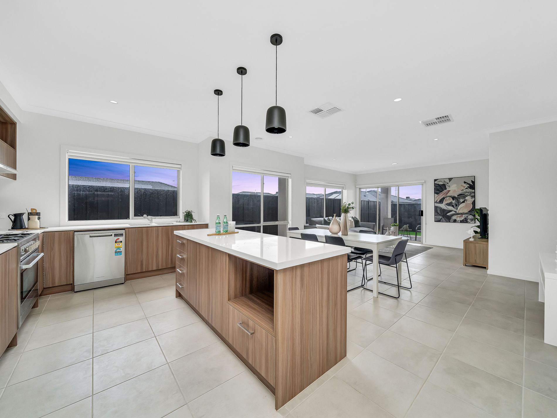 Contemporary Kitchen – 900mm stainless steel appliances, dishwasher, island bench, ample cabinetry and step-in pantry