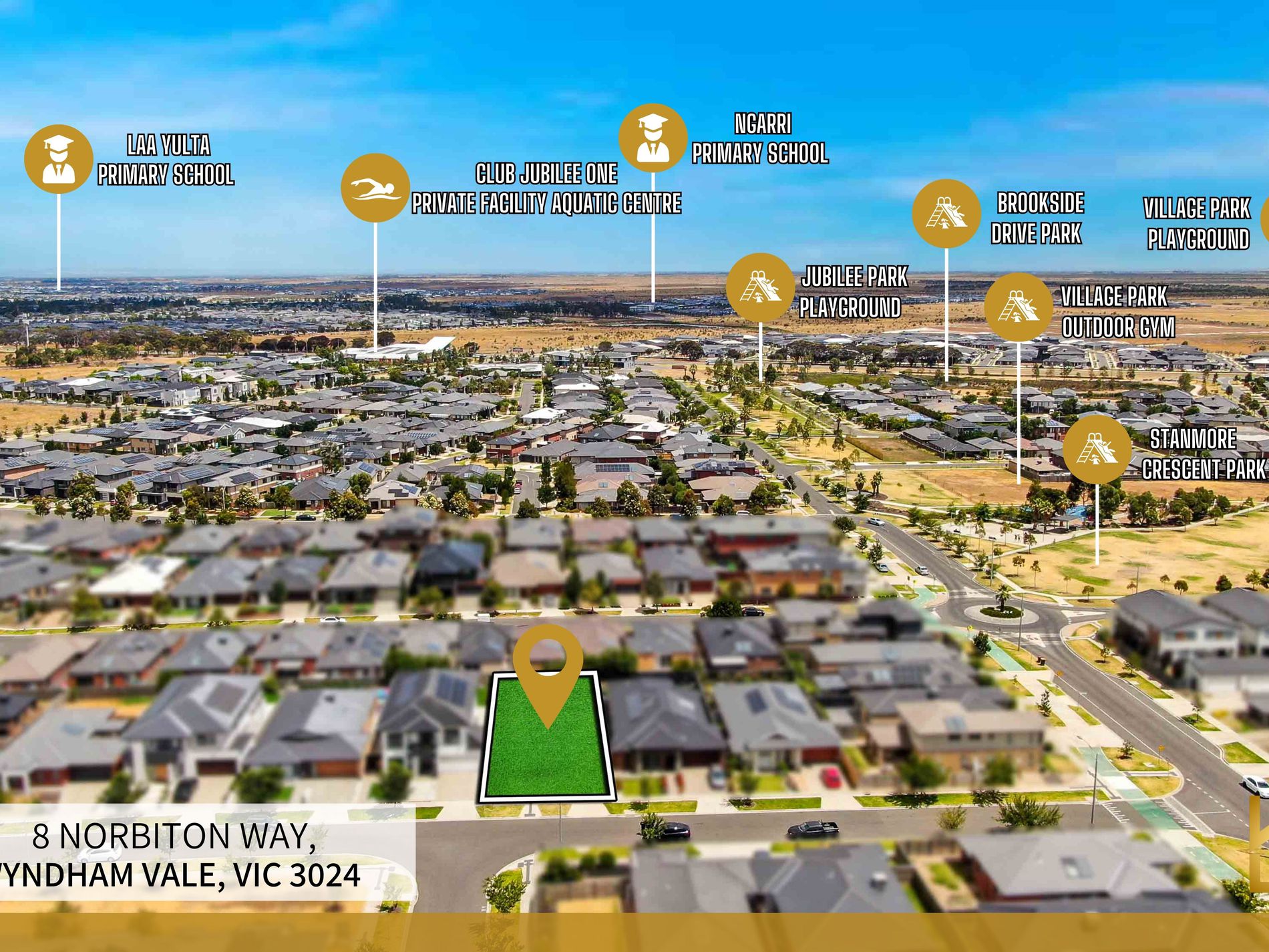 Situated walking distance to the upcoming Mackillop College (opening 2028), Bus Stops, Shops & Essentials, Jubilee Resident's Club and within a short drive to local schools, Train Station, Manor Lakes Central Shopping Centre and all other amenities.