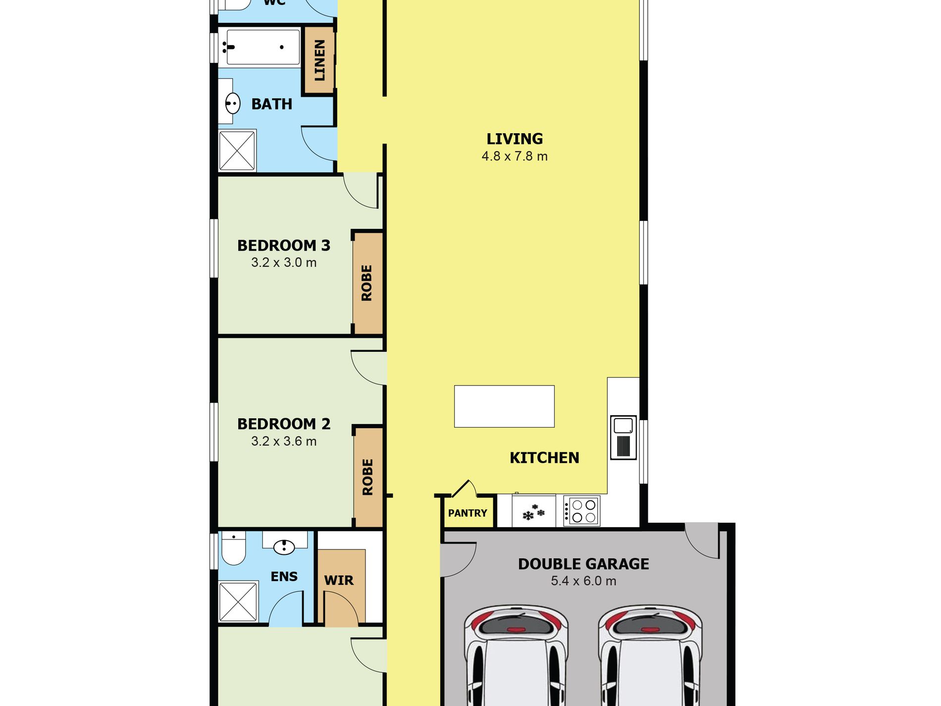 • Remote controlled double car garage with internal access