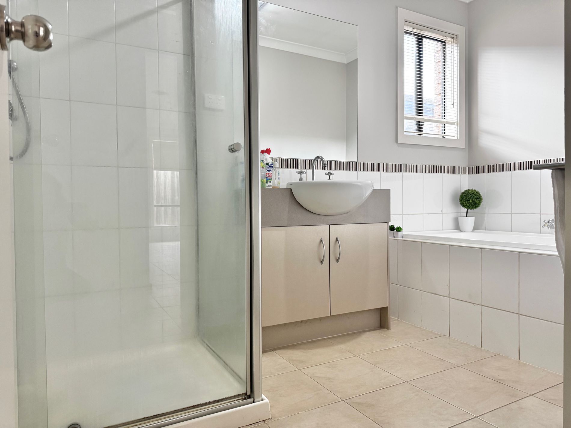 • Well-maintained bathroom with separate toilet for added convenience